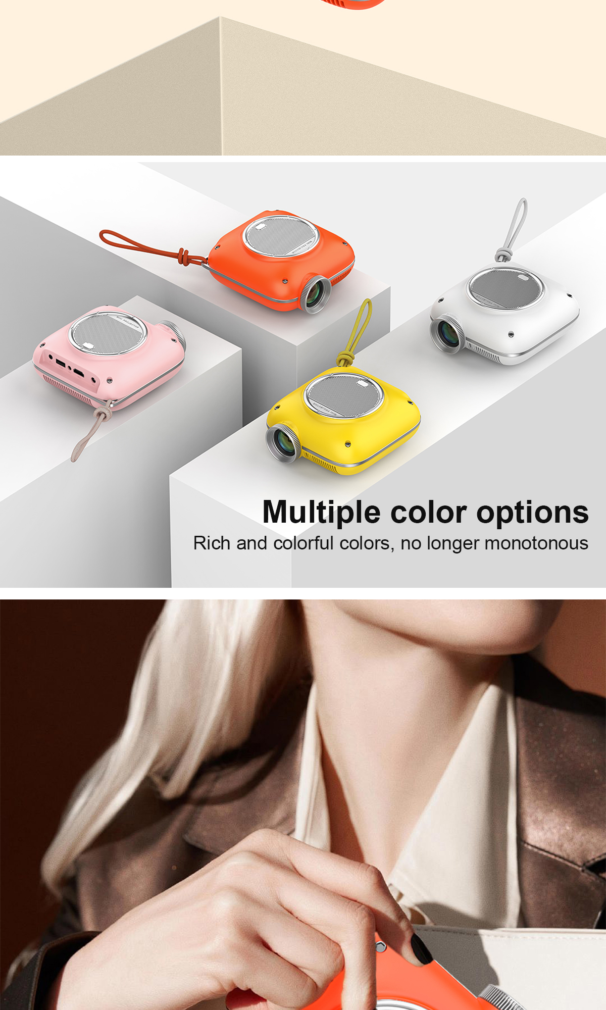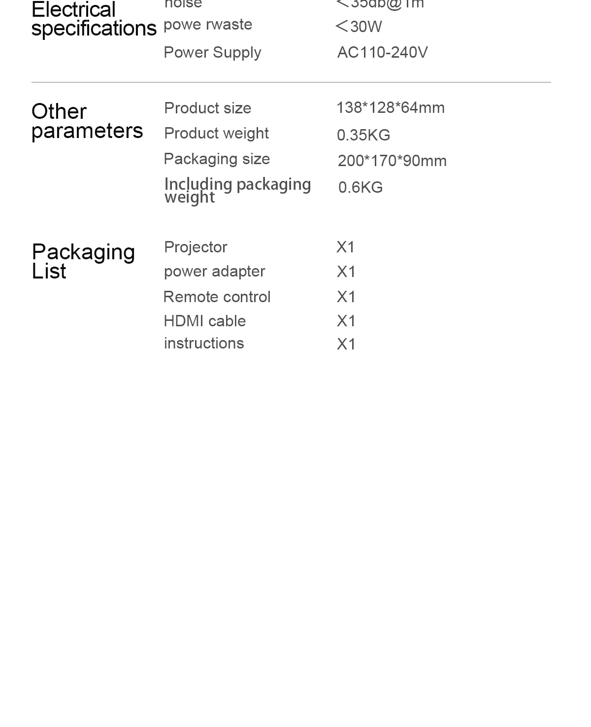 家用迷你投影仪:同屏/安卓 ,手动对焦 ,双频WIFI ,双向蓝牙,HD720P, 100ANSI (产品尺寸:137.5*128*63.7mm)